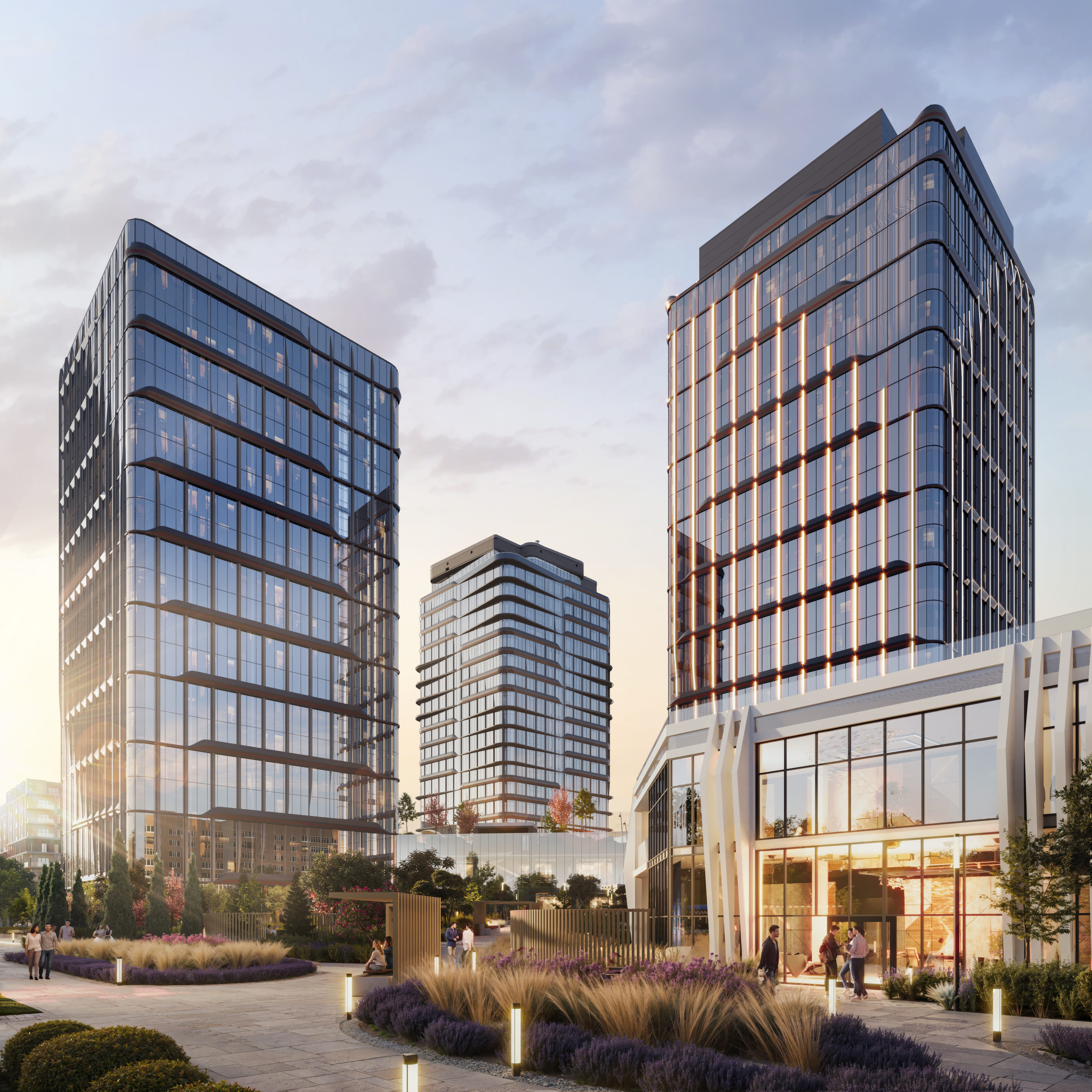 по 22 этажа с видом на берег